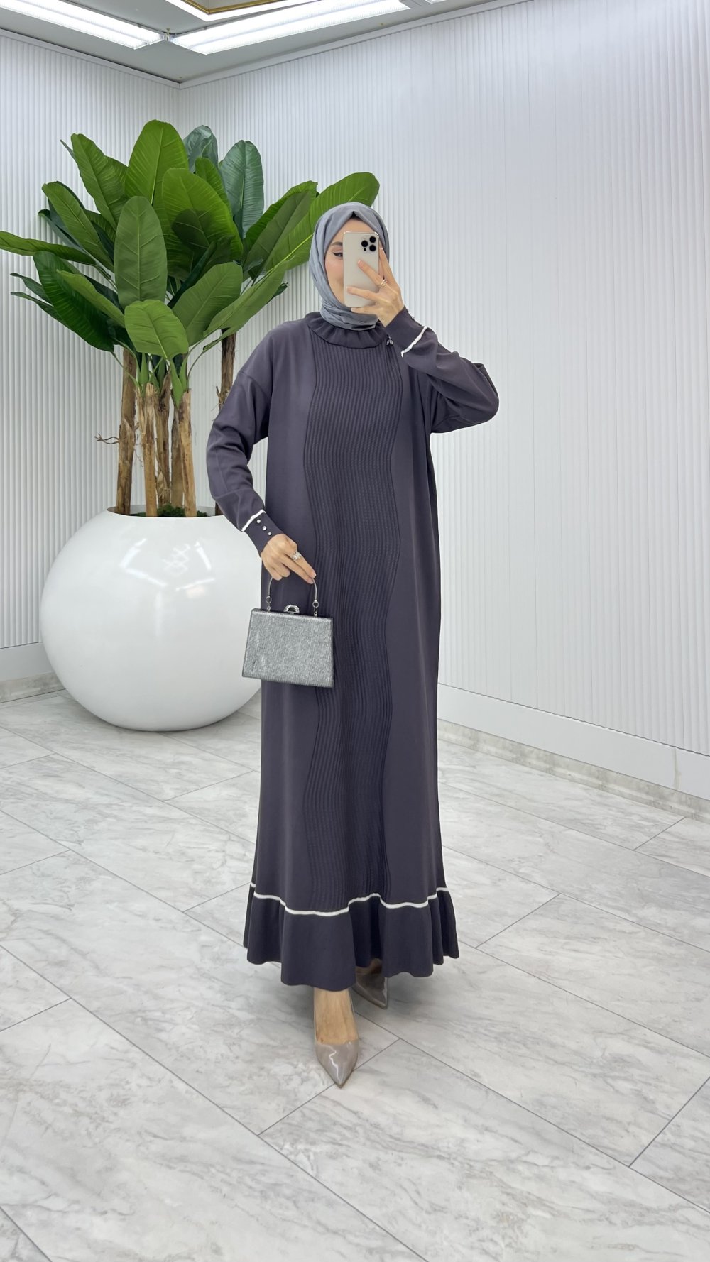 Antrasit Bensu Triko Elbise Tesettür Giyim Antrasit