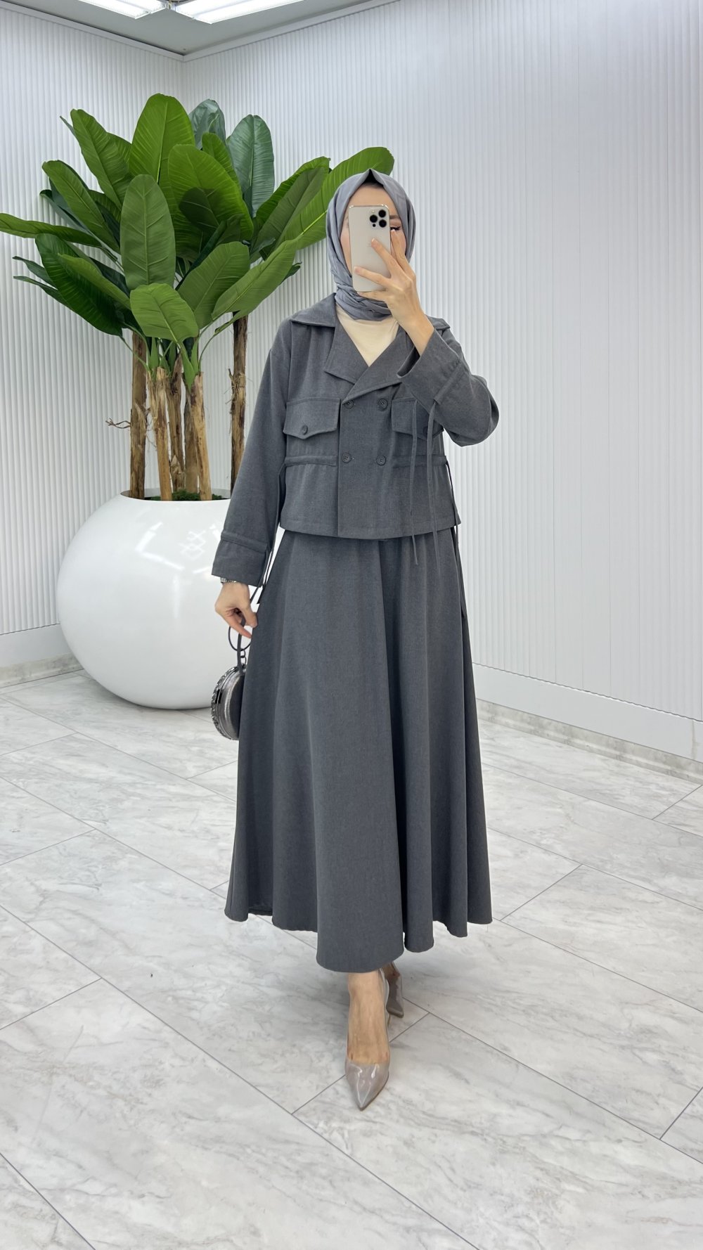 Antrasit Delal Etek Takım Tesettür Giyim Antrasit