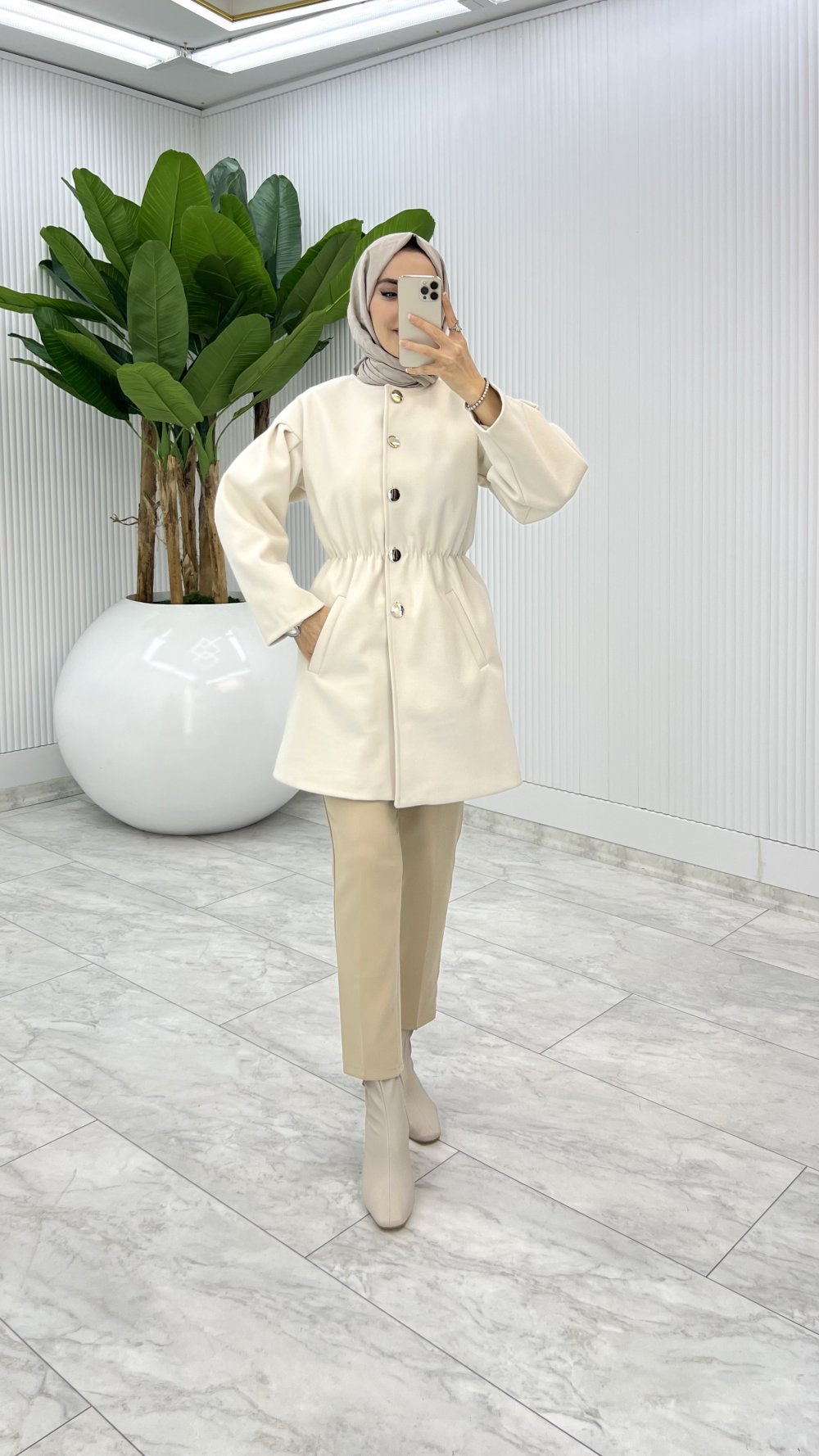 Bej Yelda Astarlı Kaşe Tesettür Giyim Taş Şal