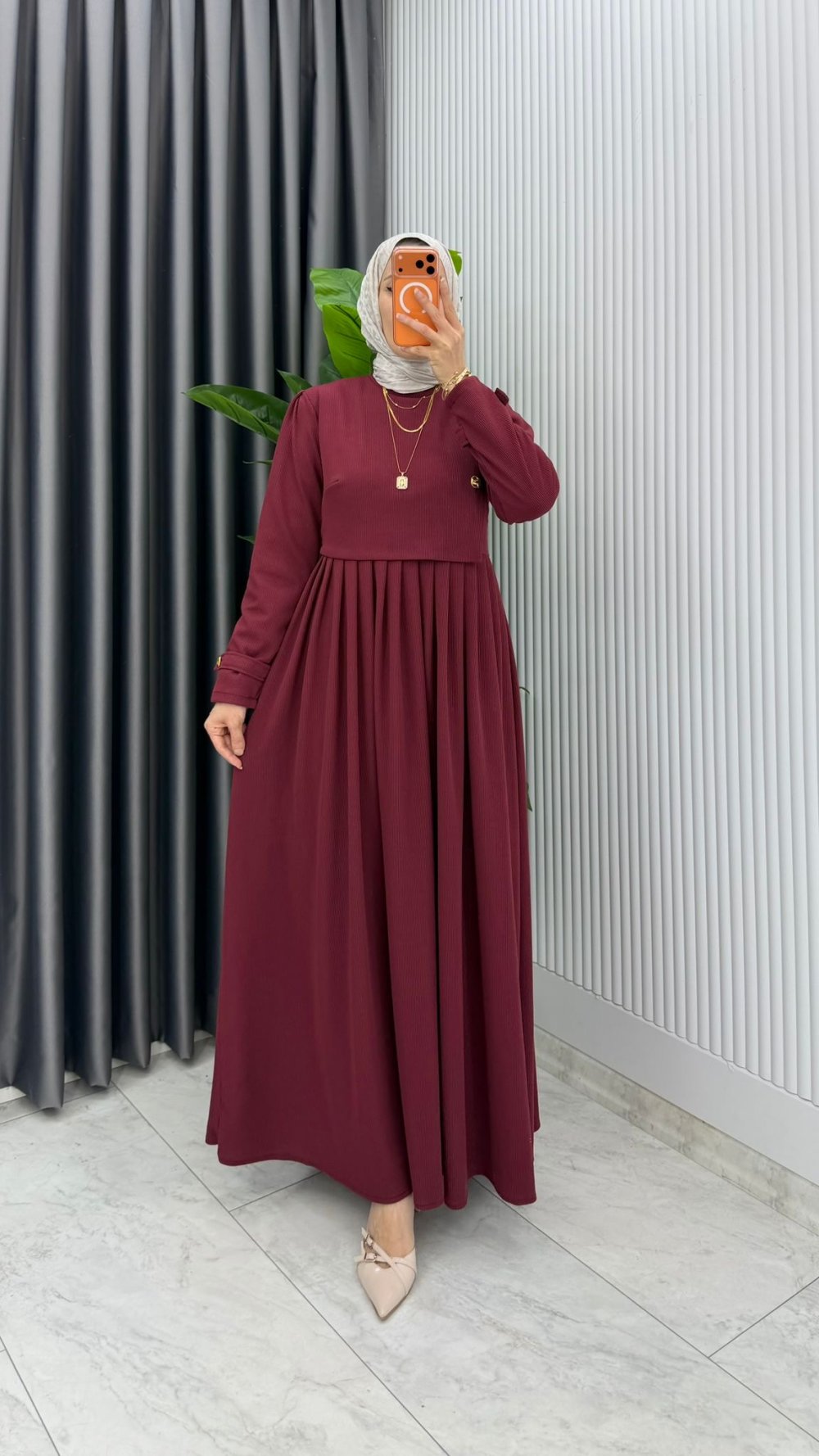 Bordo Burgu Sinem Elbise Tesettür Giyim Bordo