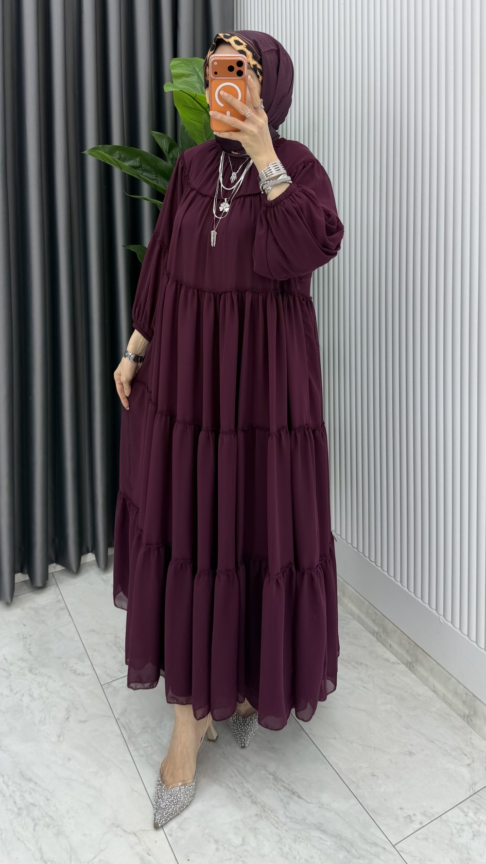 Bordo Güzide Elbise Tesettür Giyim Bordo