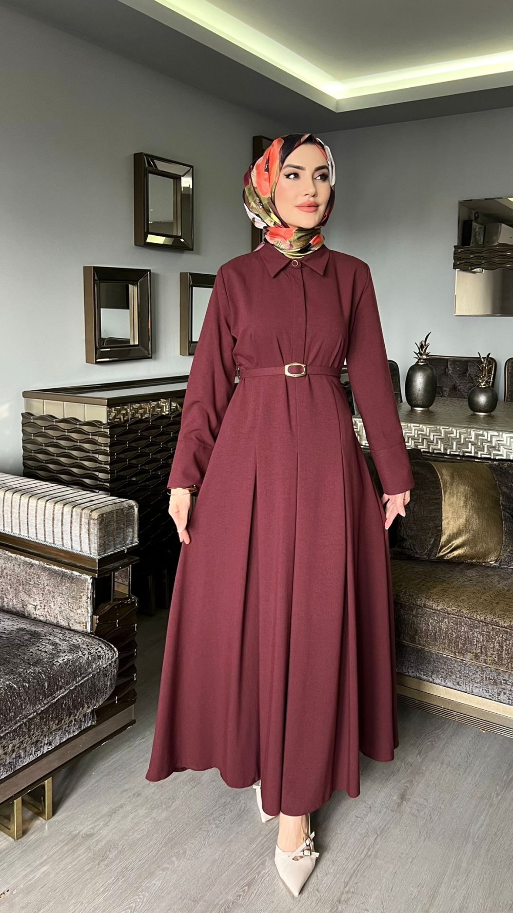 Bordo Premıum Farah Elbise Tesettür Giyim Bordo