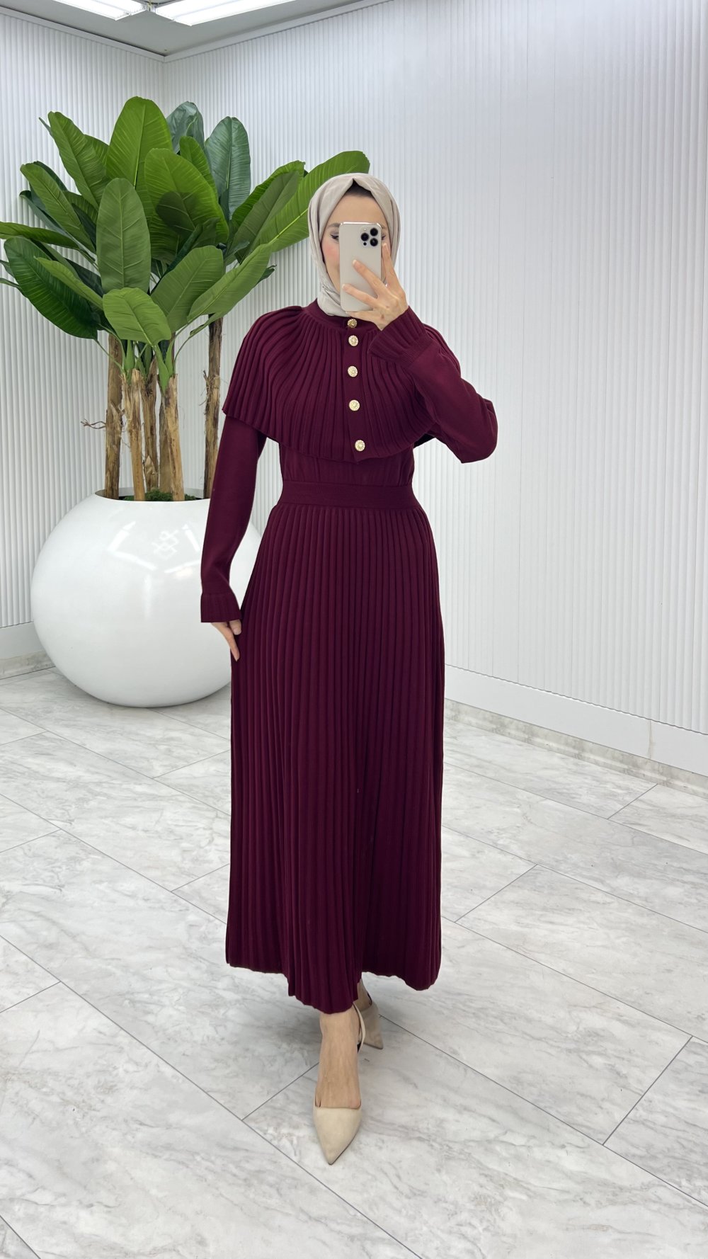 Bordo Sümeyye İkili Triko Takım Tesettür Giyim Bordo