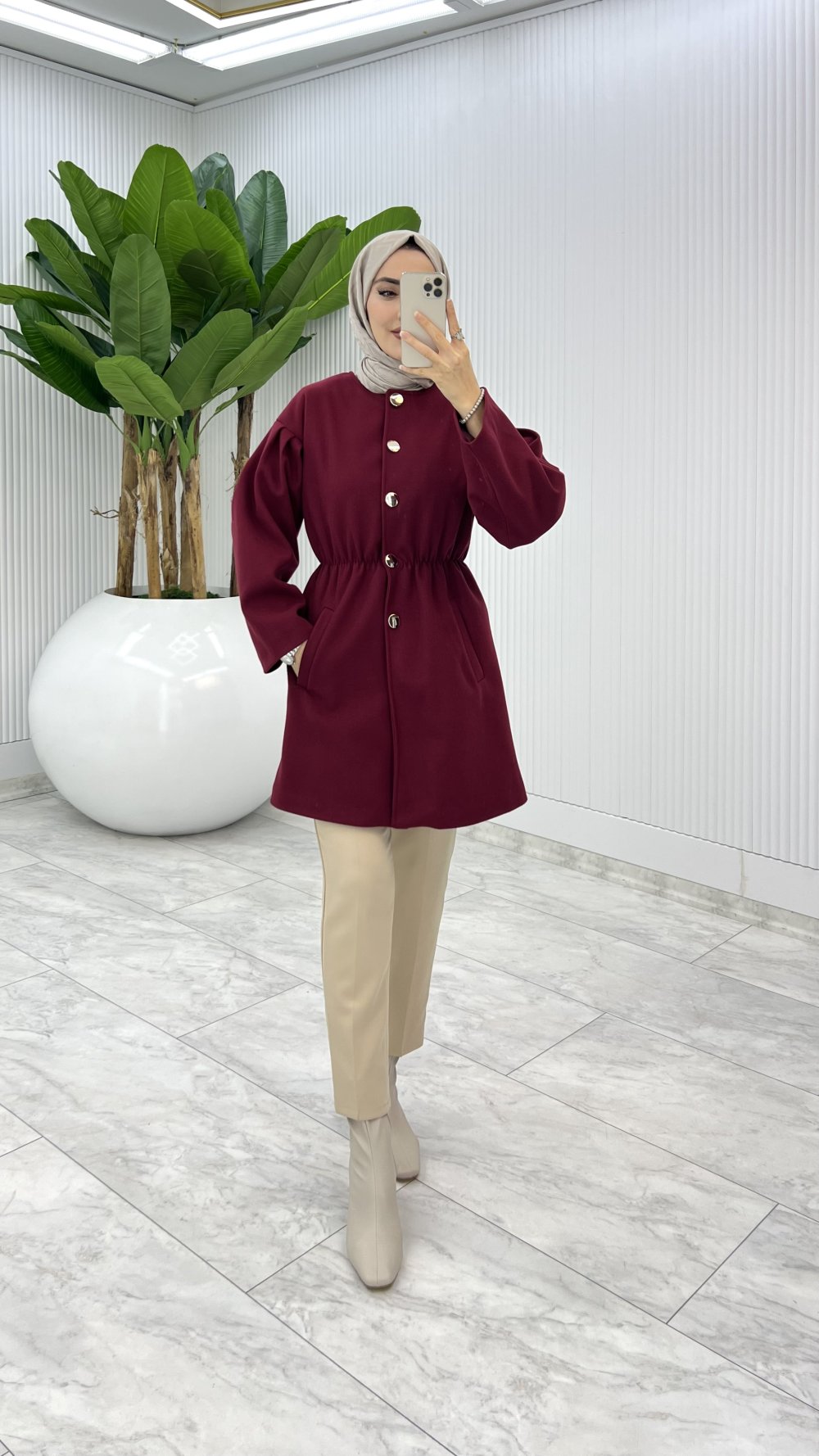 Bordo Yelda Kaşe Tesettür Giyim Bordo