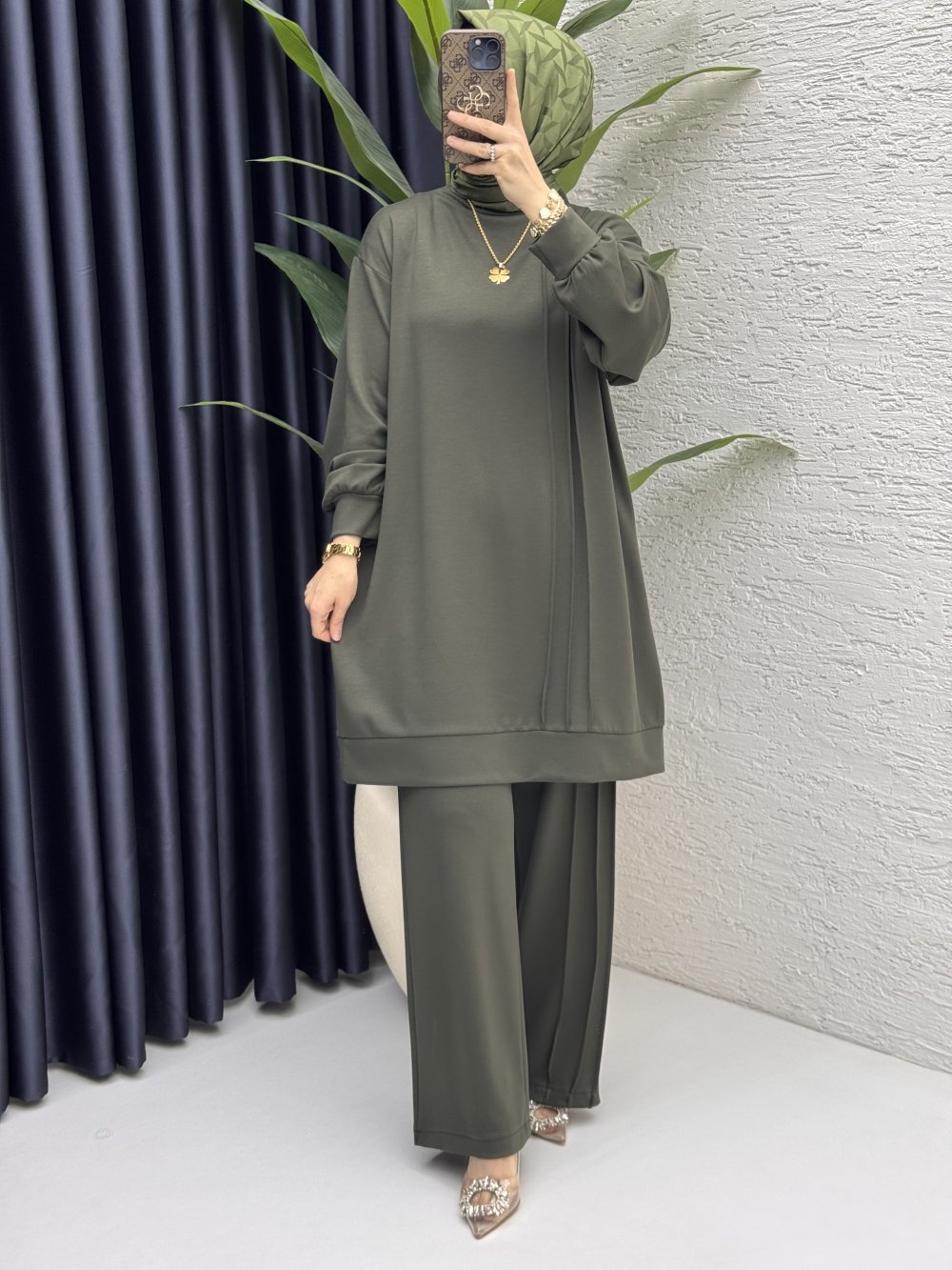 Çımalı Takım Tesettür Giyim Haki