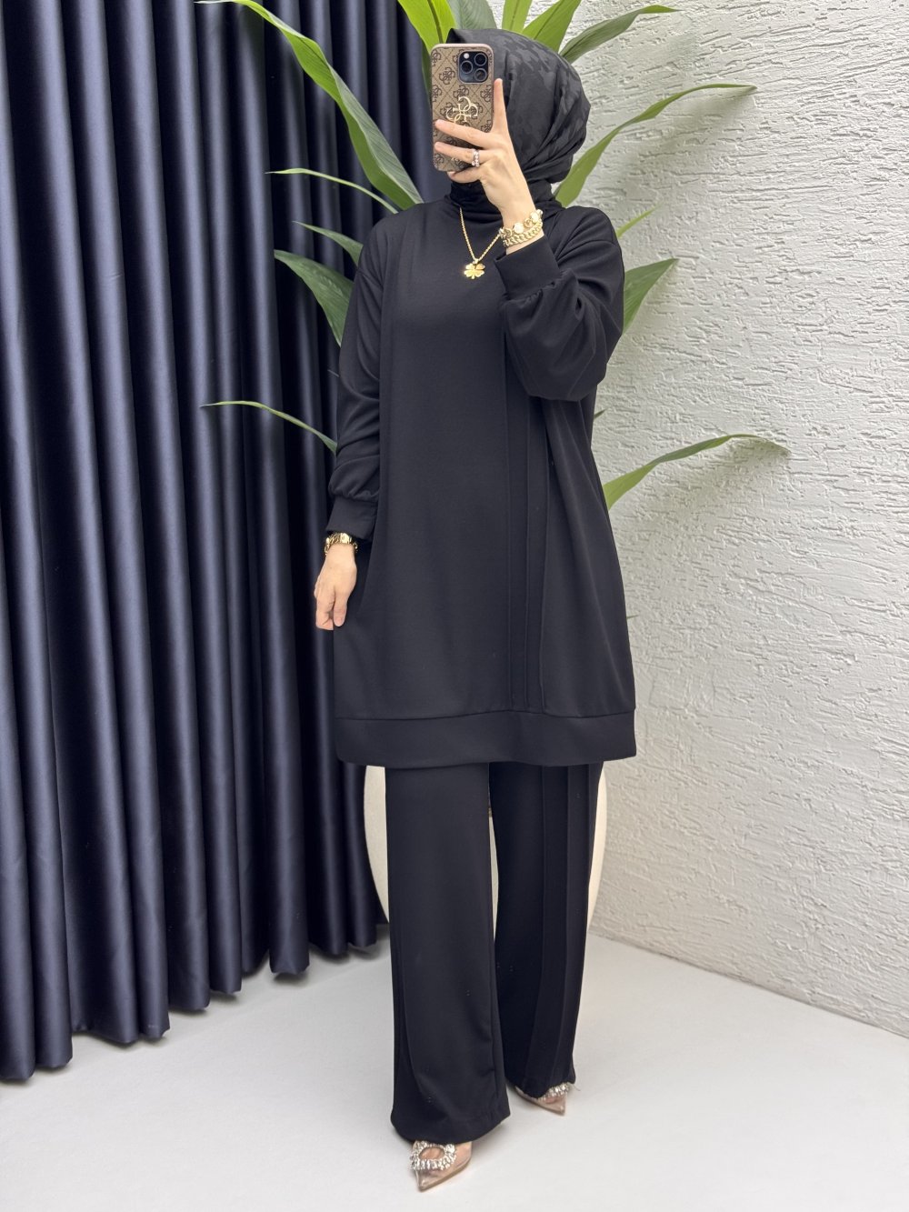 Çımalı Takım Tesettür Giyim Siyah