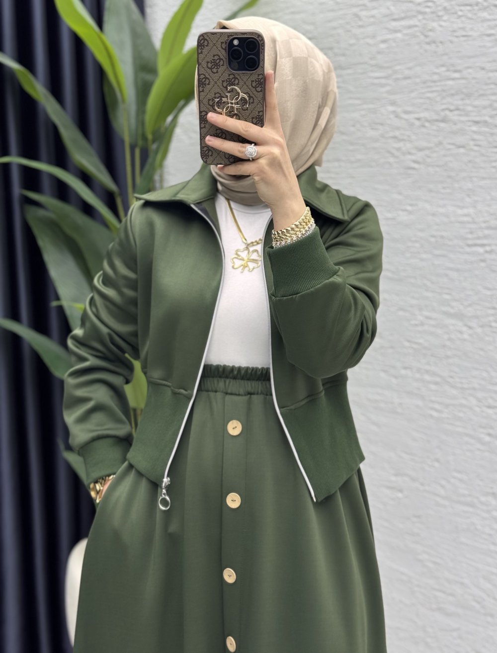 Dilruba Etekli Takım Tesettür Giyim Haki