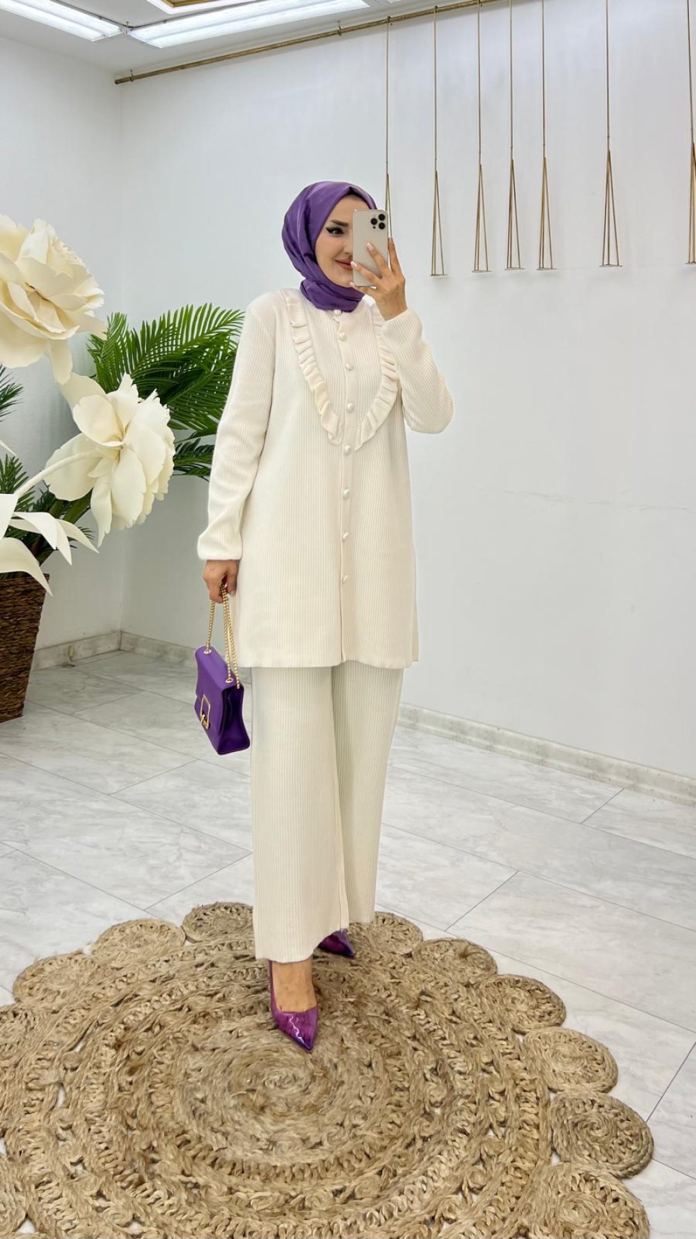 Ekru Pera Triko Takım Tesettür Giyim Ekru