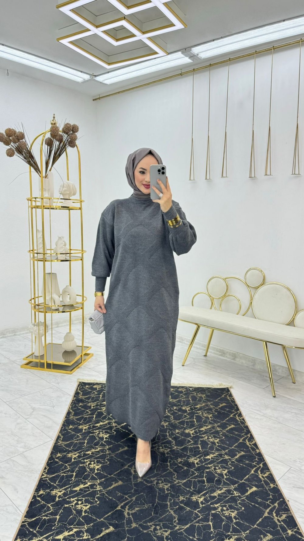 Füme Baklava Triko Elbise Tesettür Giyim Füme