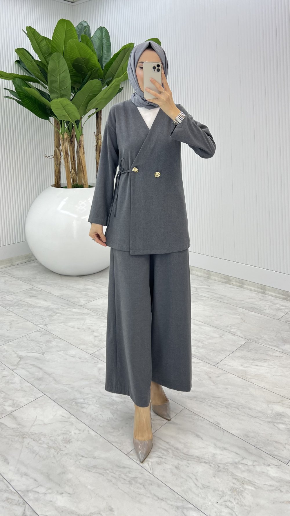 Füme Güler Pantolonlu Takım Tesettür Giyim Füme
