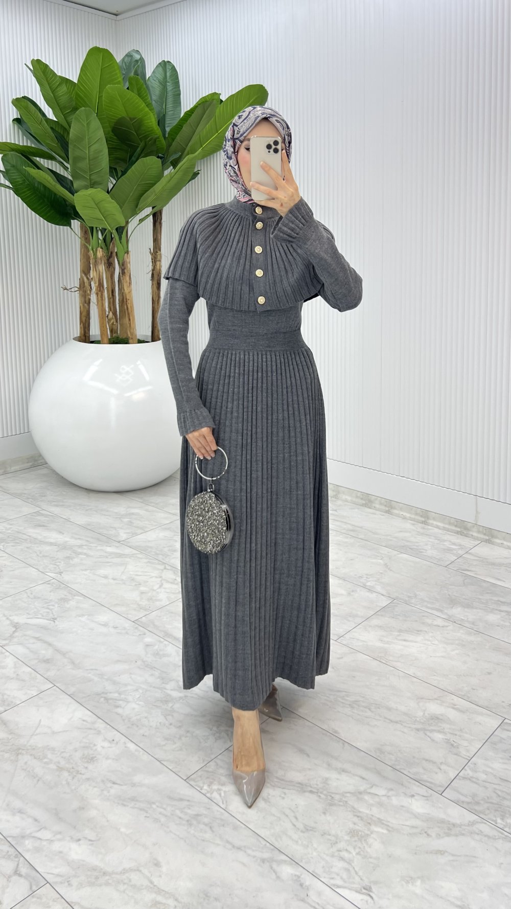 Füme Sümeyye İkili Triko Takım Tesettür Giyim Füme