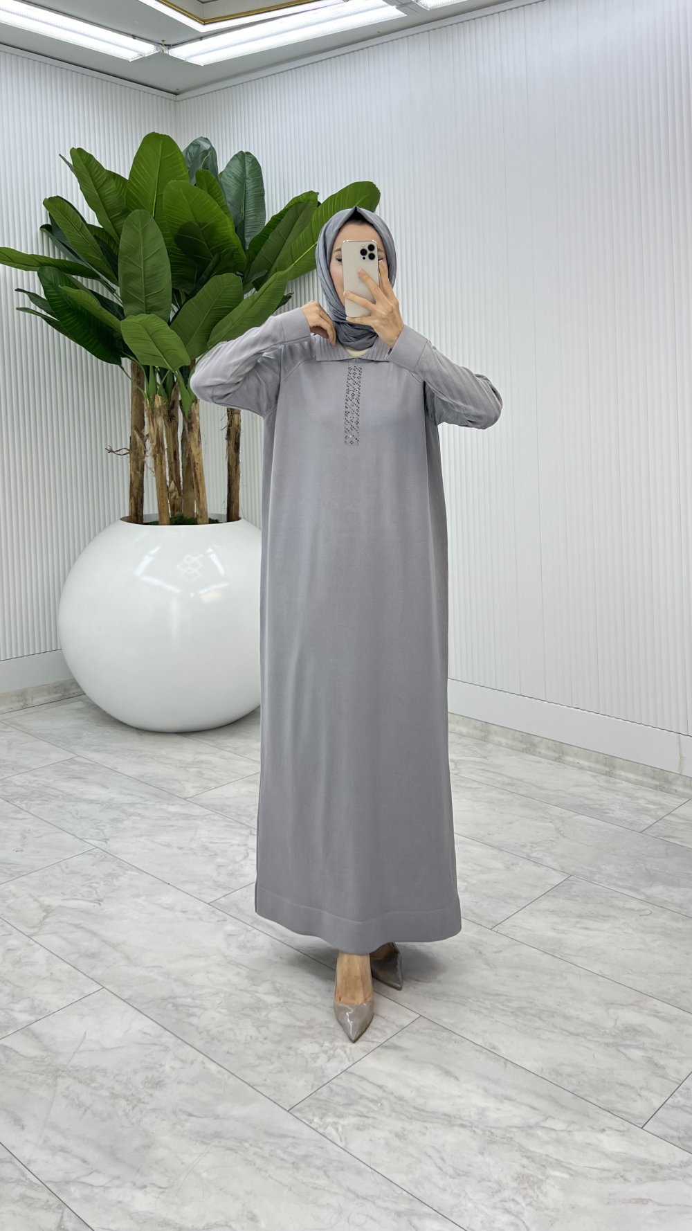 Gri Arzu Triko Elbise Tesettür Giyim Gri