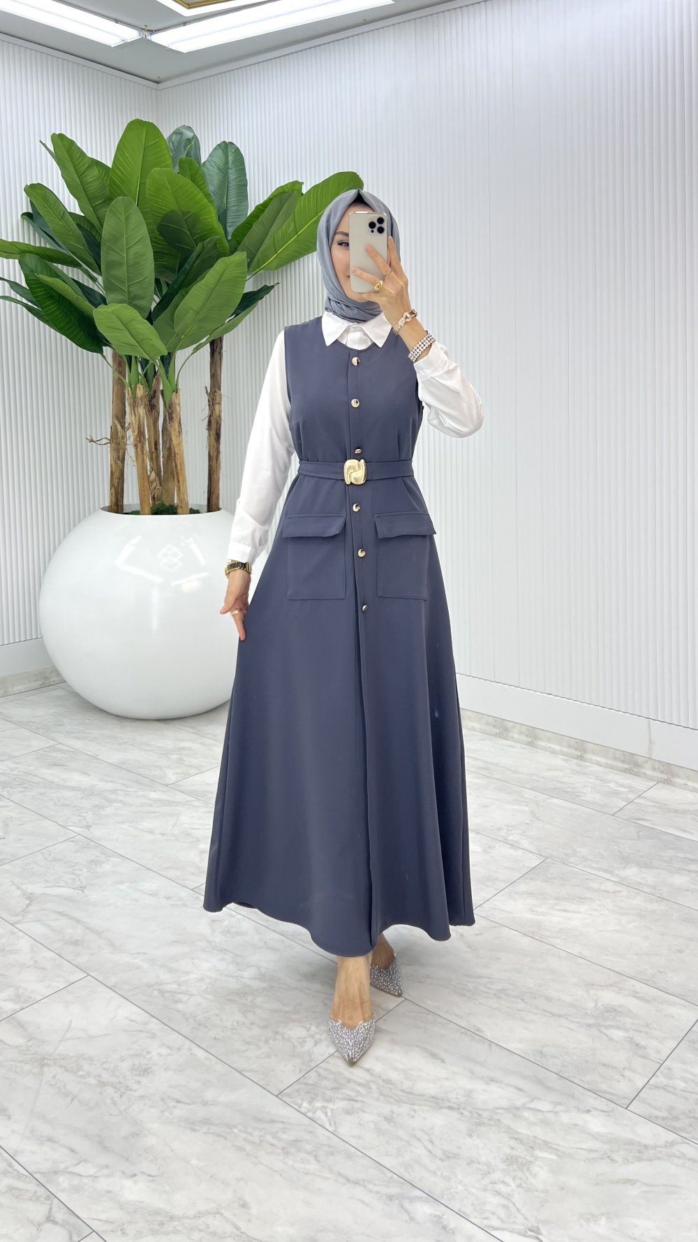 Gri Sude Jile Tesettür Giyim Gri