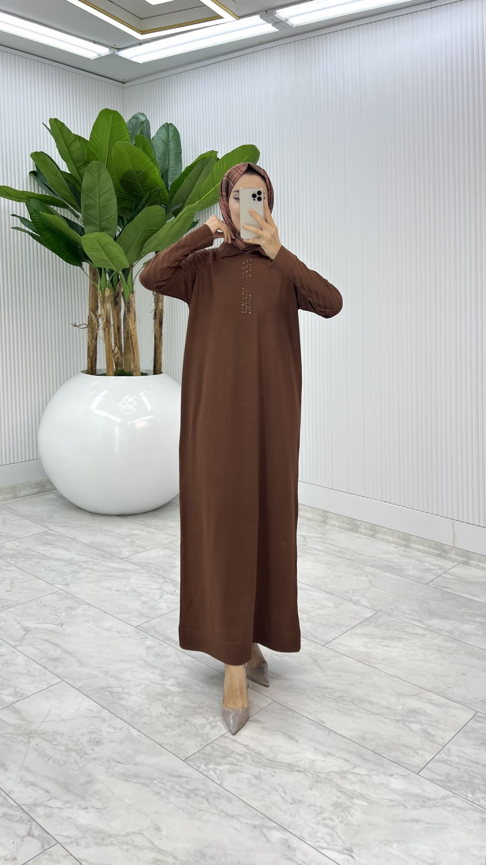 Kahve Arzu Triko Elbise Tesettür Giyim Kahverengi
