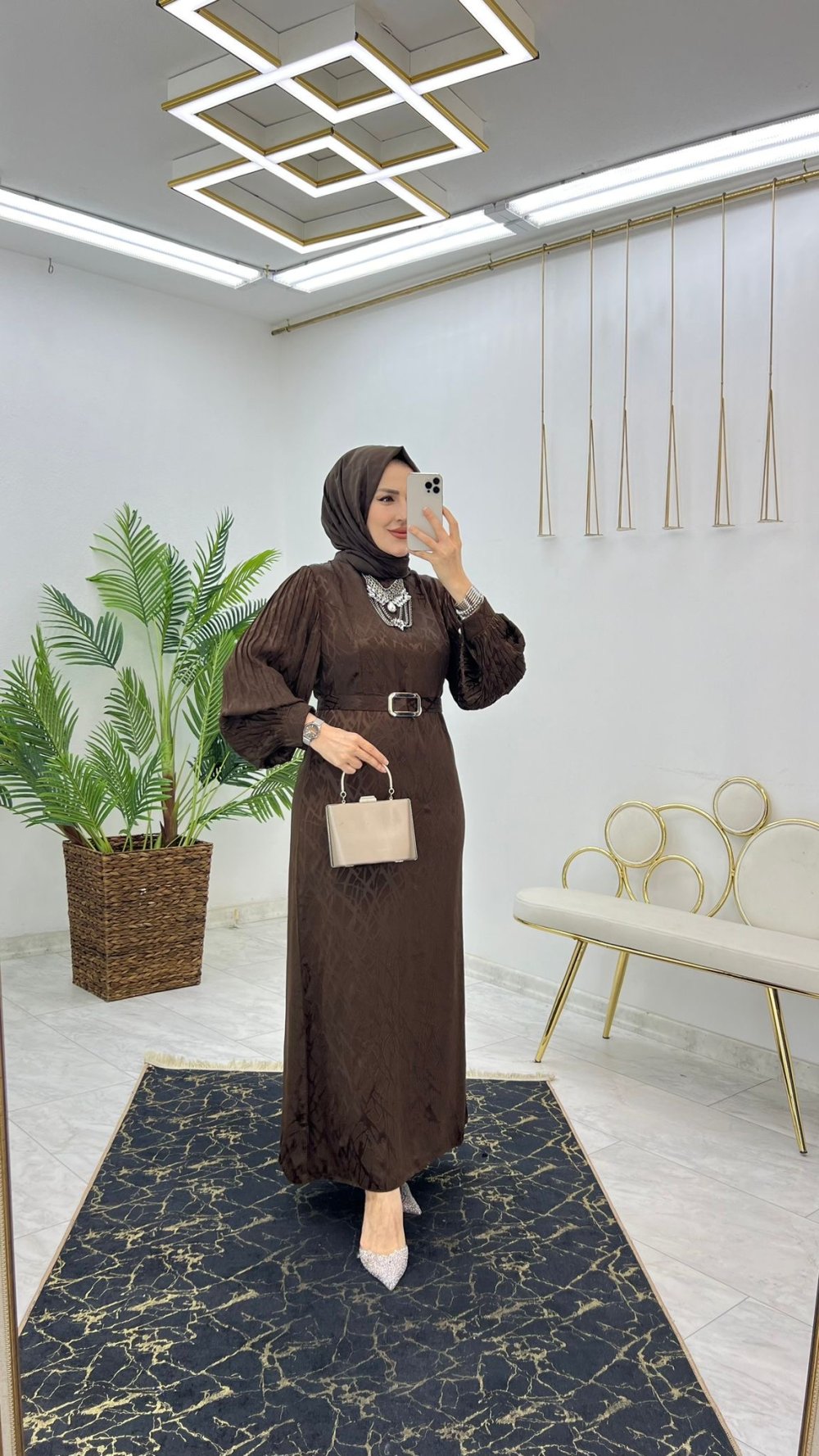 Kahve Lamia Elbise Tesettür Giyim Kahverengi