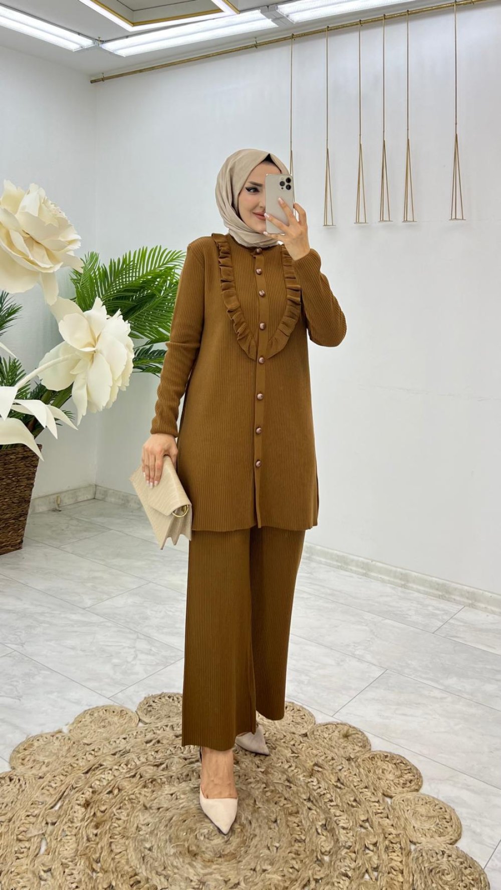 Kahve Pera Triko Takım Tesettür Giyim Kahverengi
