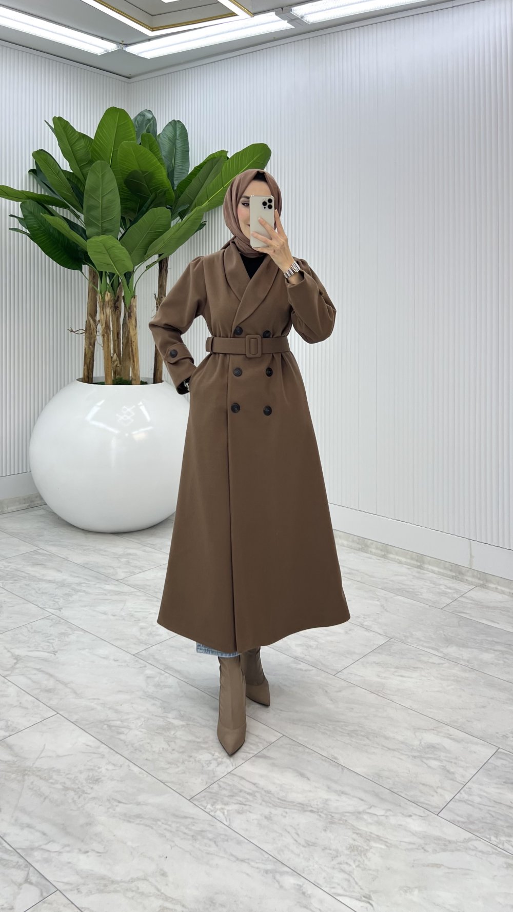 Kahve Premium Kaşe Kaban Tesettür Giyim Kahverengi
