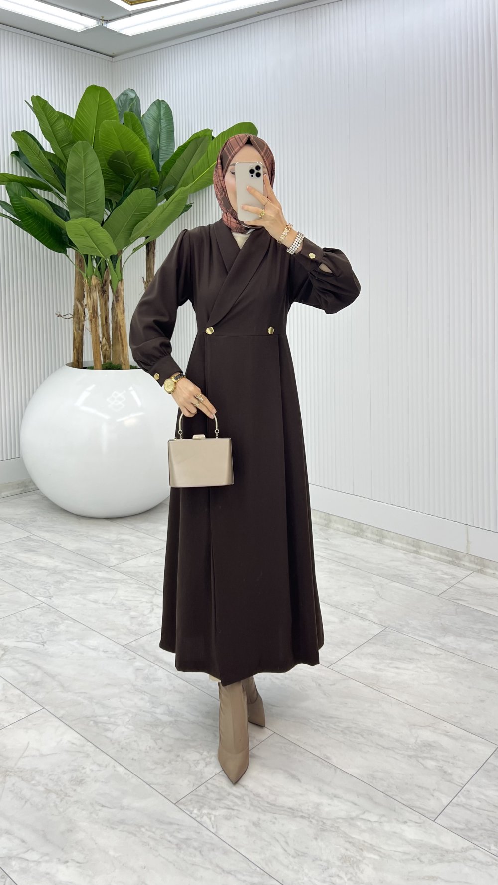 Kahve Semra Ferace Elbise Tesettür Giyim Acı Kahve