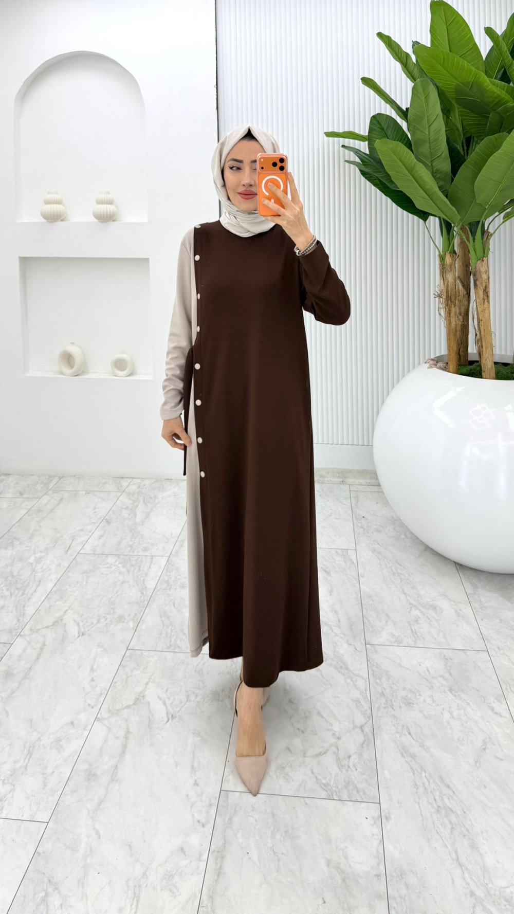Kahverengi Nilda Elbise Tesettür Giyim Kahverengi