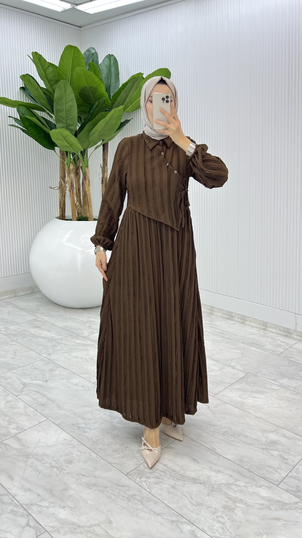 Kahverengi Şehnaz Elbise Tesettür Giyim Kahverengi