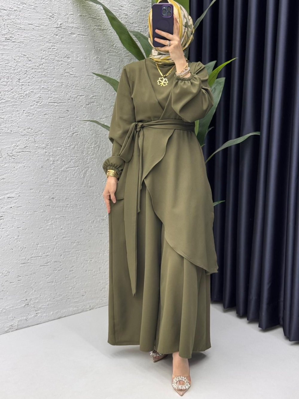 Koyu Haki Hanzade Takım Tesettür Giyim Koyu Yeşil