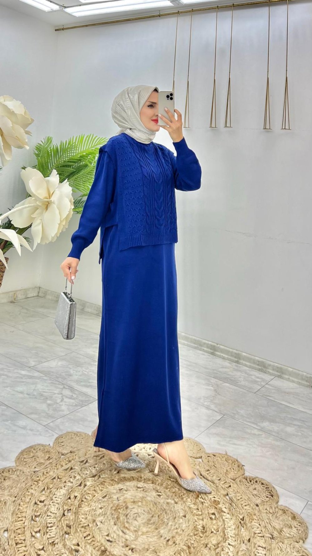 Lacivert Damla Triko Elbise Takım Tesettür Giyim Lacivert