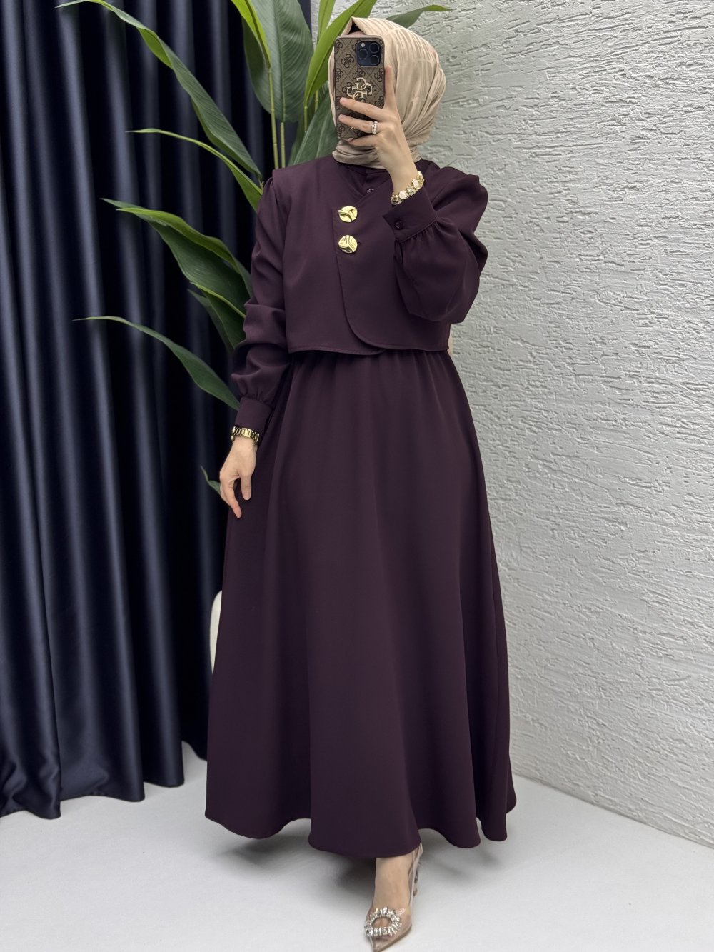 Leyza Elbise Tesettür Giyim Mürdüm