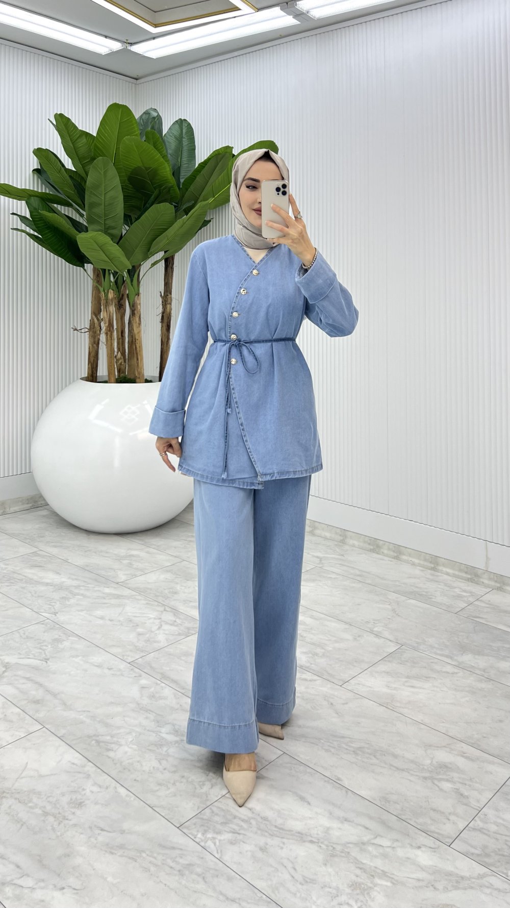 Mavi Beyza Kot Takım Tesettür Giyim Mavi