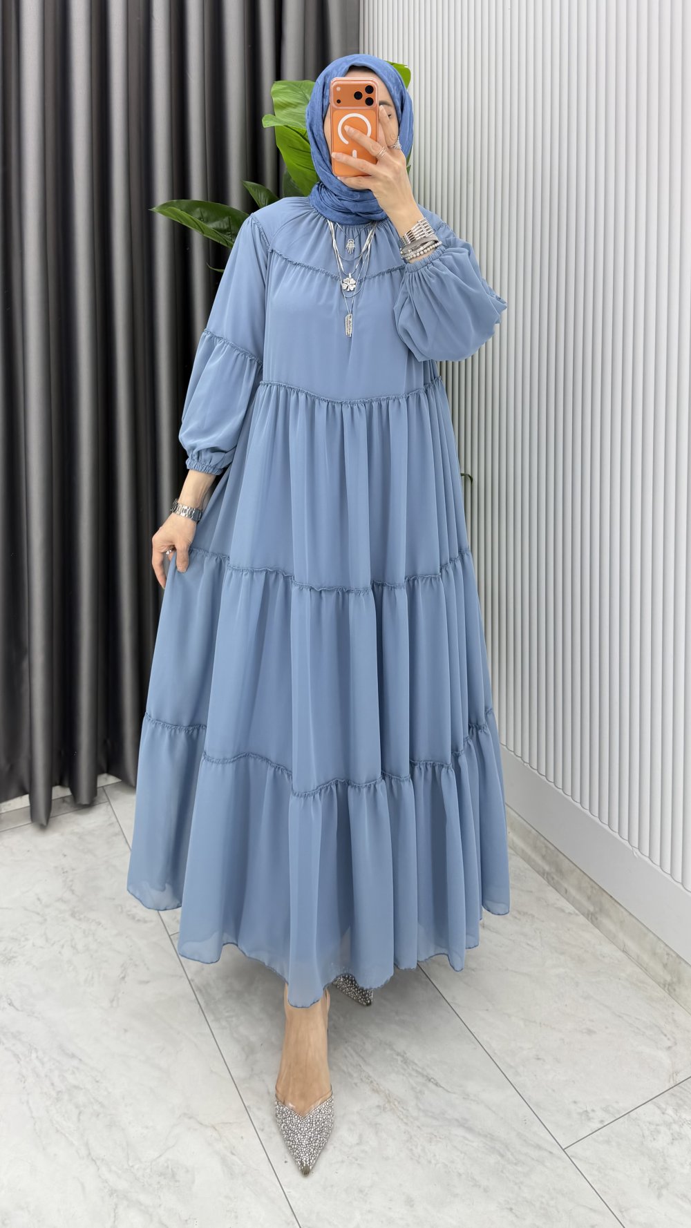 Mavi Güzide Elbise Tesettür Giyim Mavi