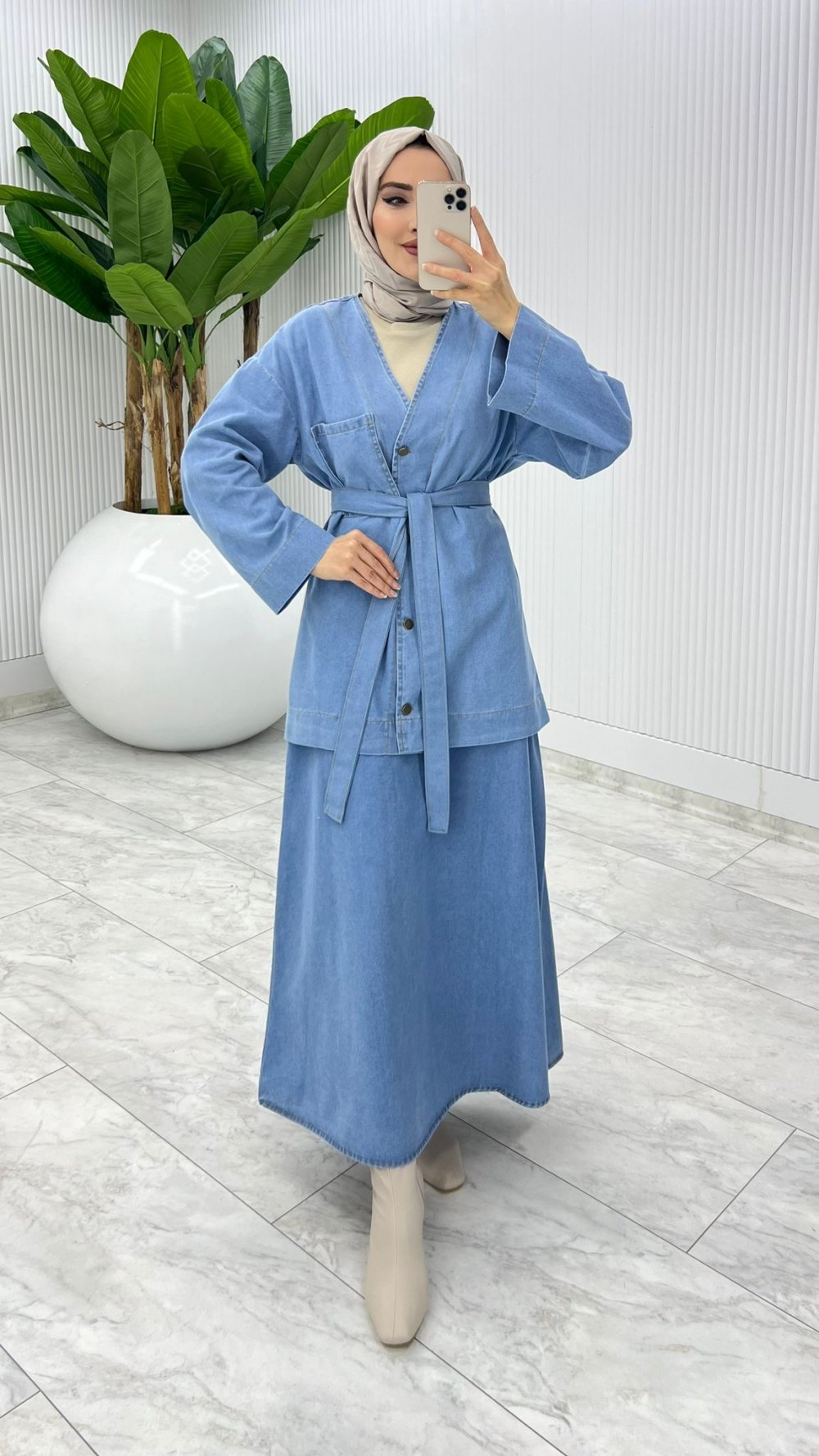 Mavi Zennub Premıum Etek Takım Tesettür Giyim Mavi
