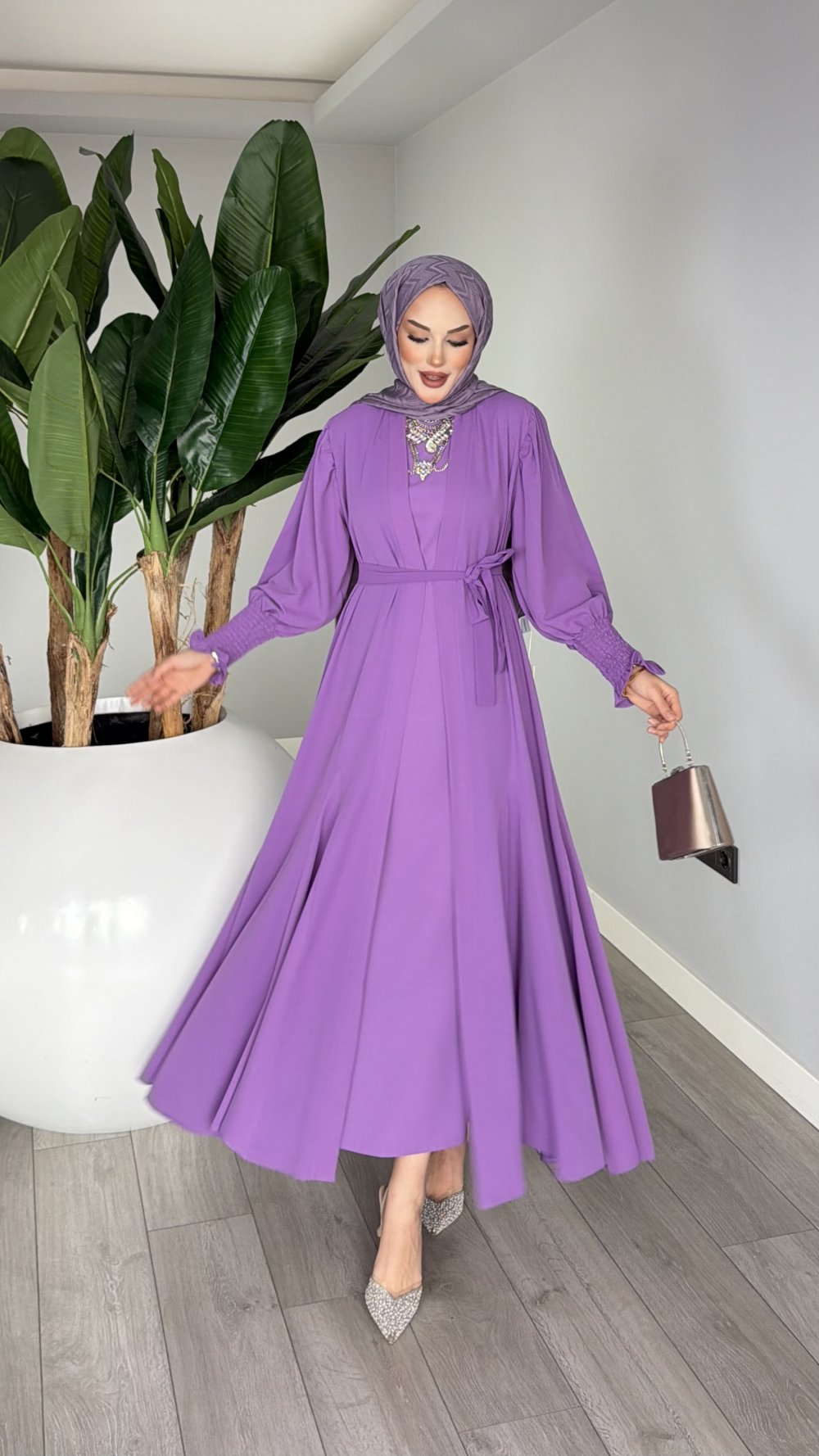 Mor Meşk Abaya Takım Tesettür Giyim Mor