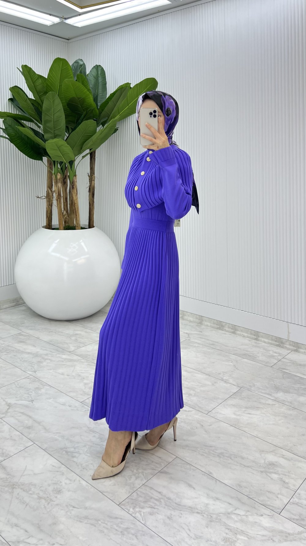 Mor Sümeyye İkili Triko Takım Tesettür Giyim Mor