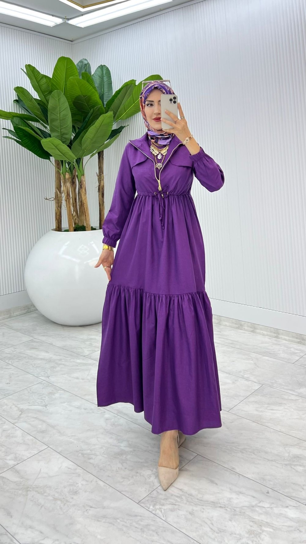 Mürdüm Hicran Elbise Takım Tesettür Elbise Mürdüm