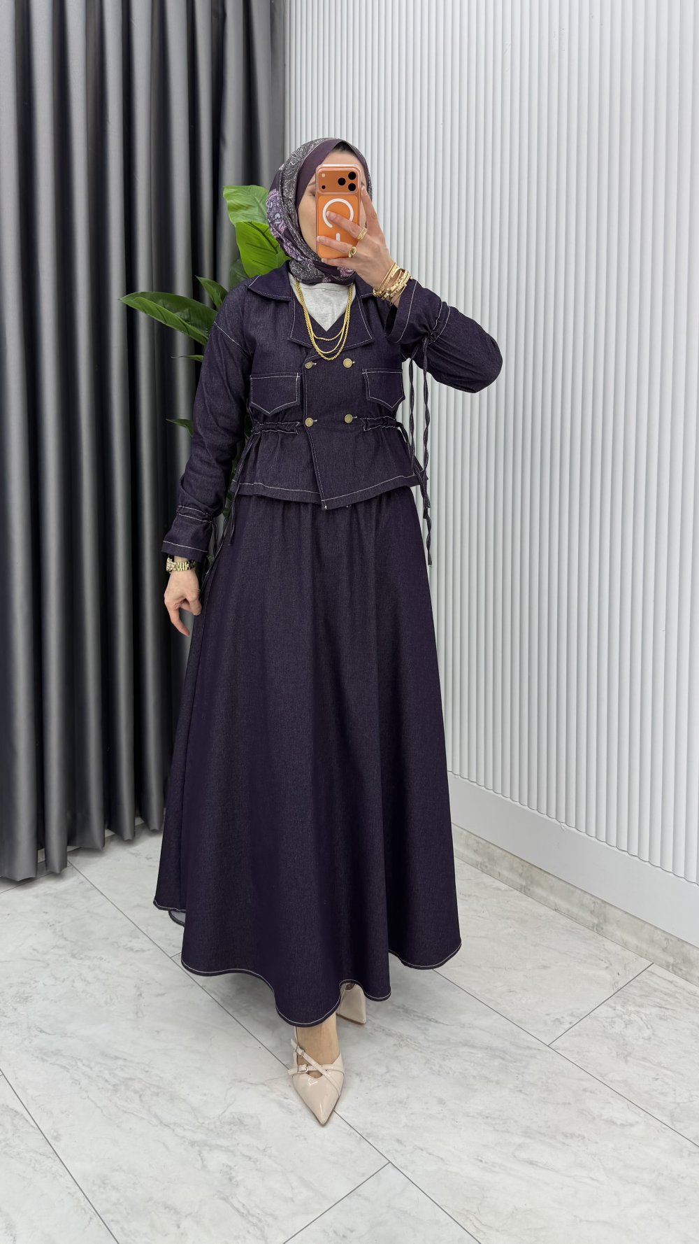 Mürdüm Premium Reyhan Kot Takım Tesettür Giyim Mürdüm