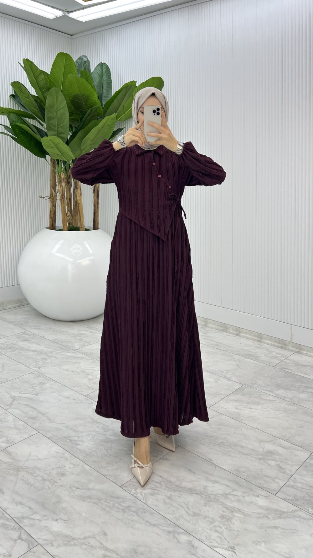 Mürdüm Şehnaz Elbise Tesettür Giyim Mürdüm