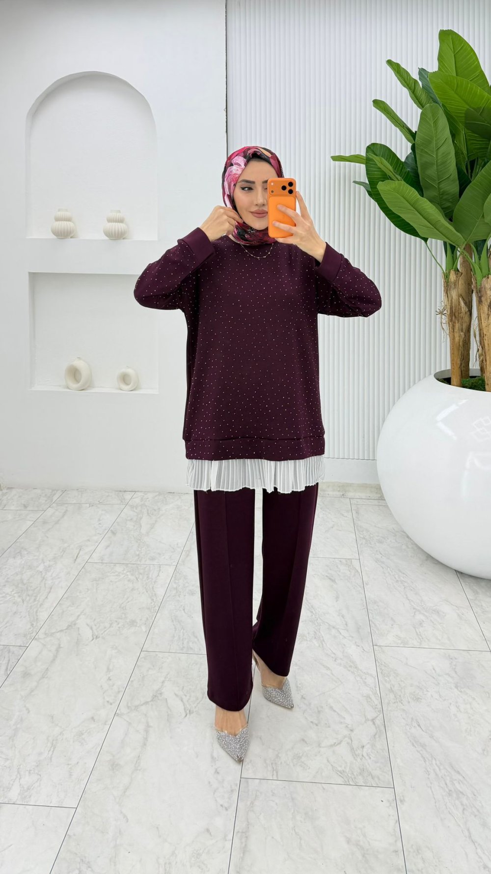 Mürdüm Taşlı Oysho Takım Tesettür Giyim Mürdüm