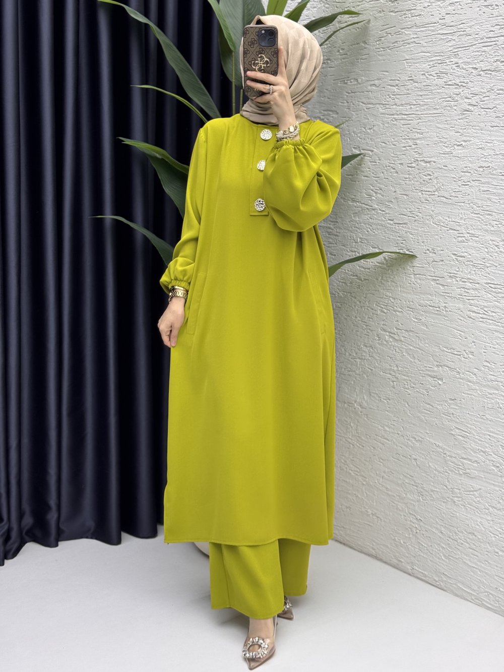 Nazenin Takım Tesettür Giyim Yağ Yeşili