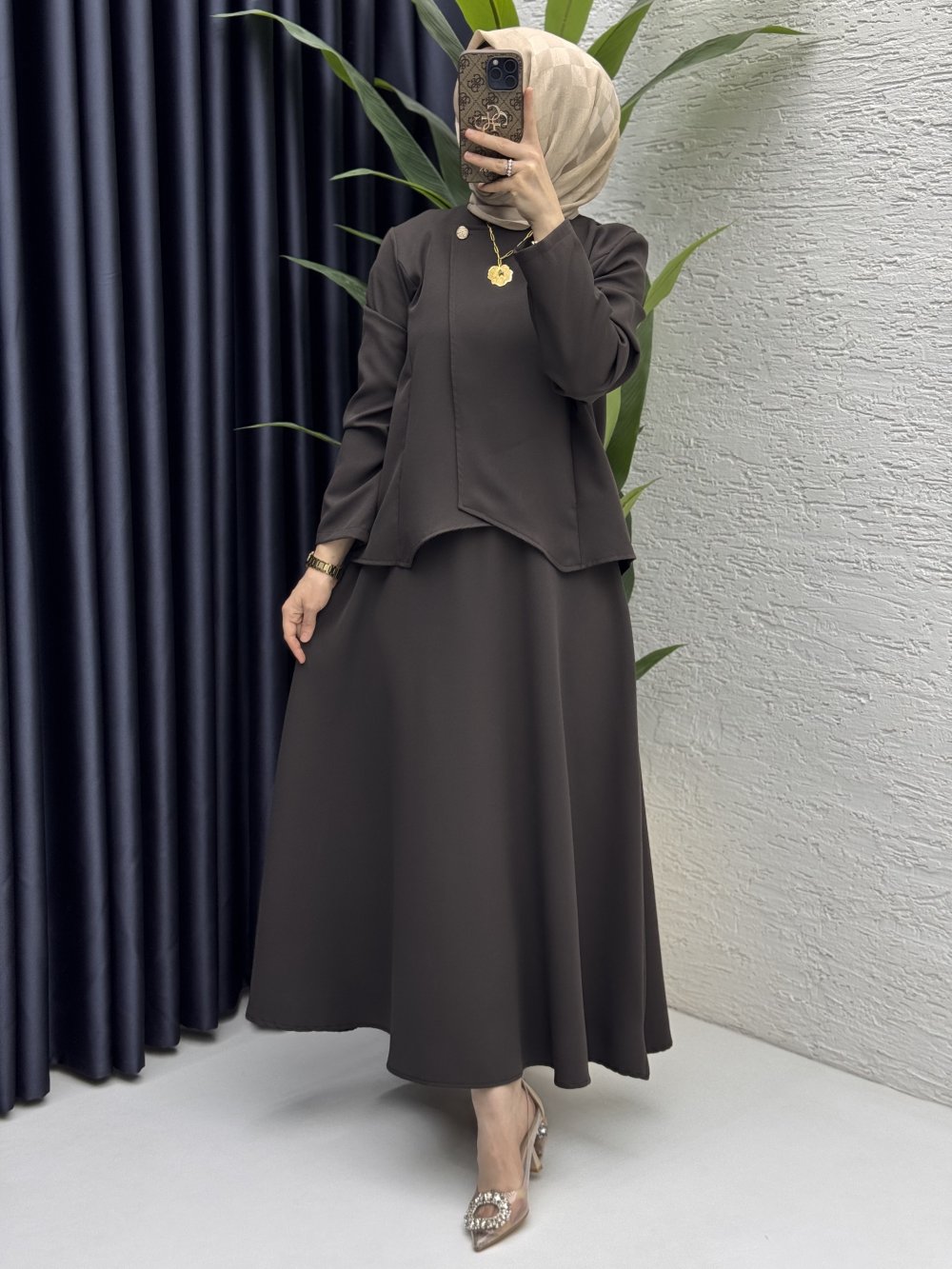 Pera Etekli Takım Tesettür Giyim Acı Kahve
