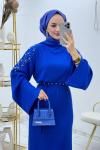 Saks Ezgi Triko Elbise Tesettür Giyim Saks Mavisi