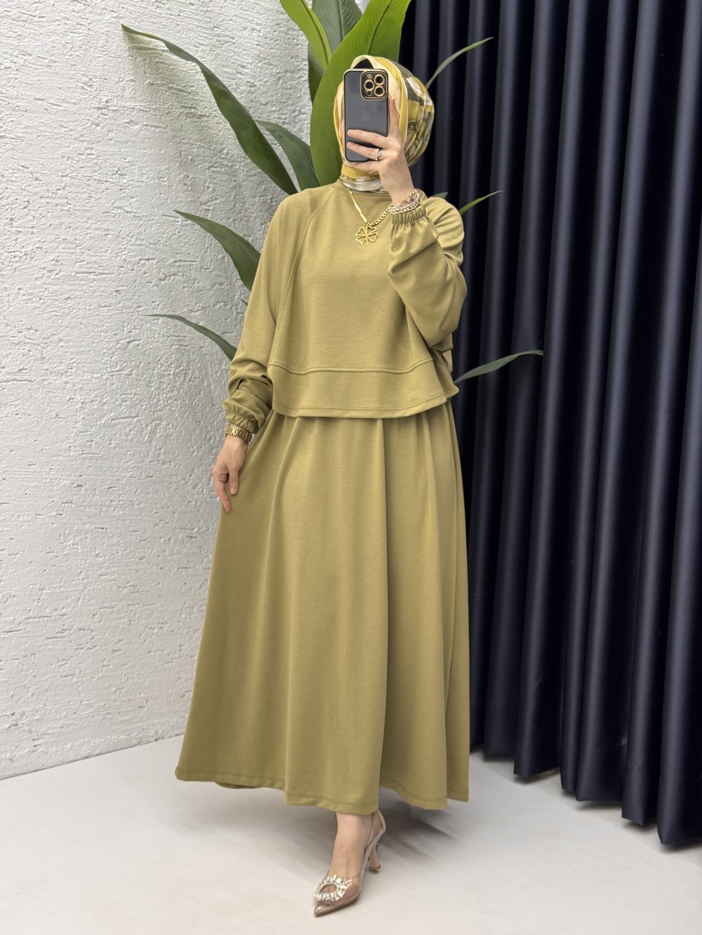 Sezin Etekli Takım Tesettür Giyim Yeşil