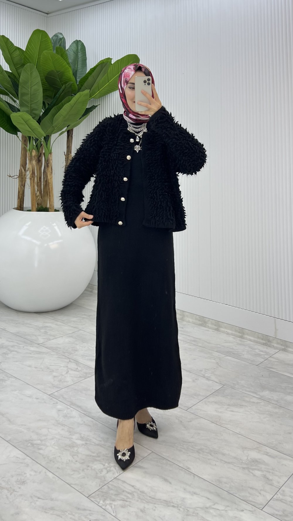 Siyah Başak Triko Takım Tesettür Giyim Siyah