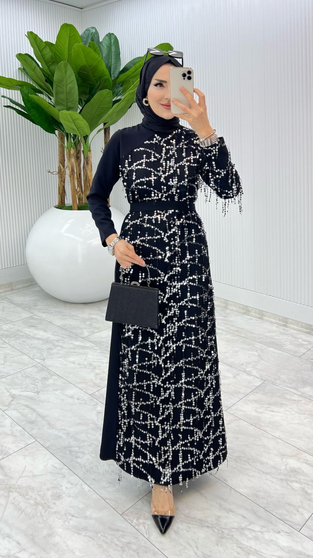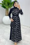 Siyah Bihter Tasarım Elbise Tesettür Giyim Siyah