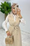 Siyah Broşlu Ala Yelek Takım Tesettür Giyim Siyah