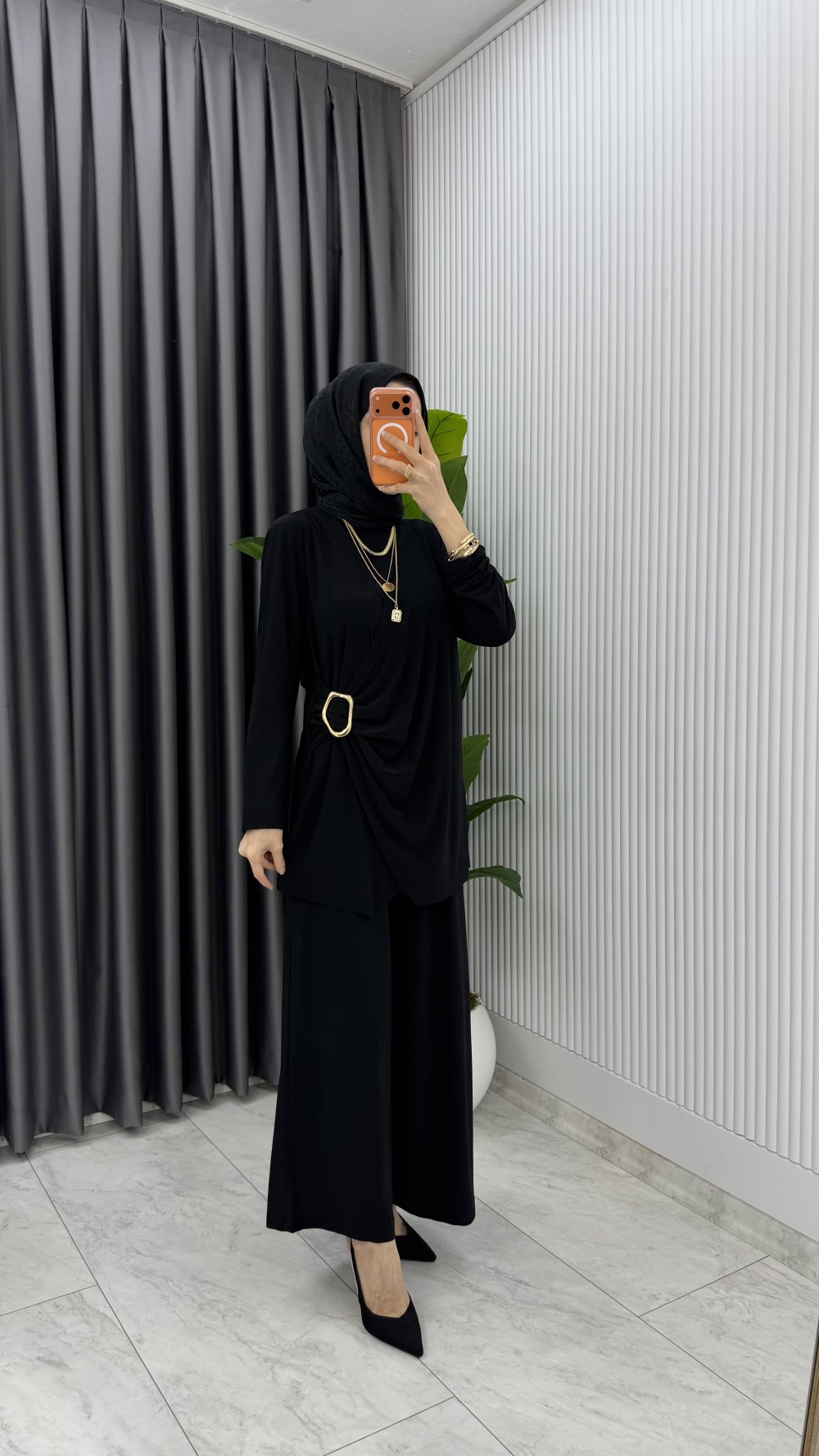 Siyah Figen Pantolon Takım Tesettür Giyim Siyah