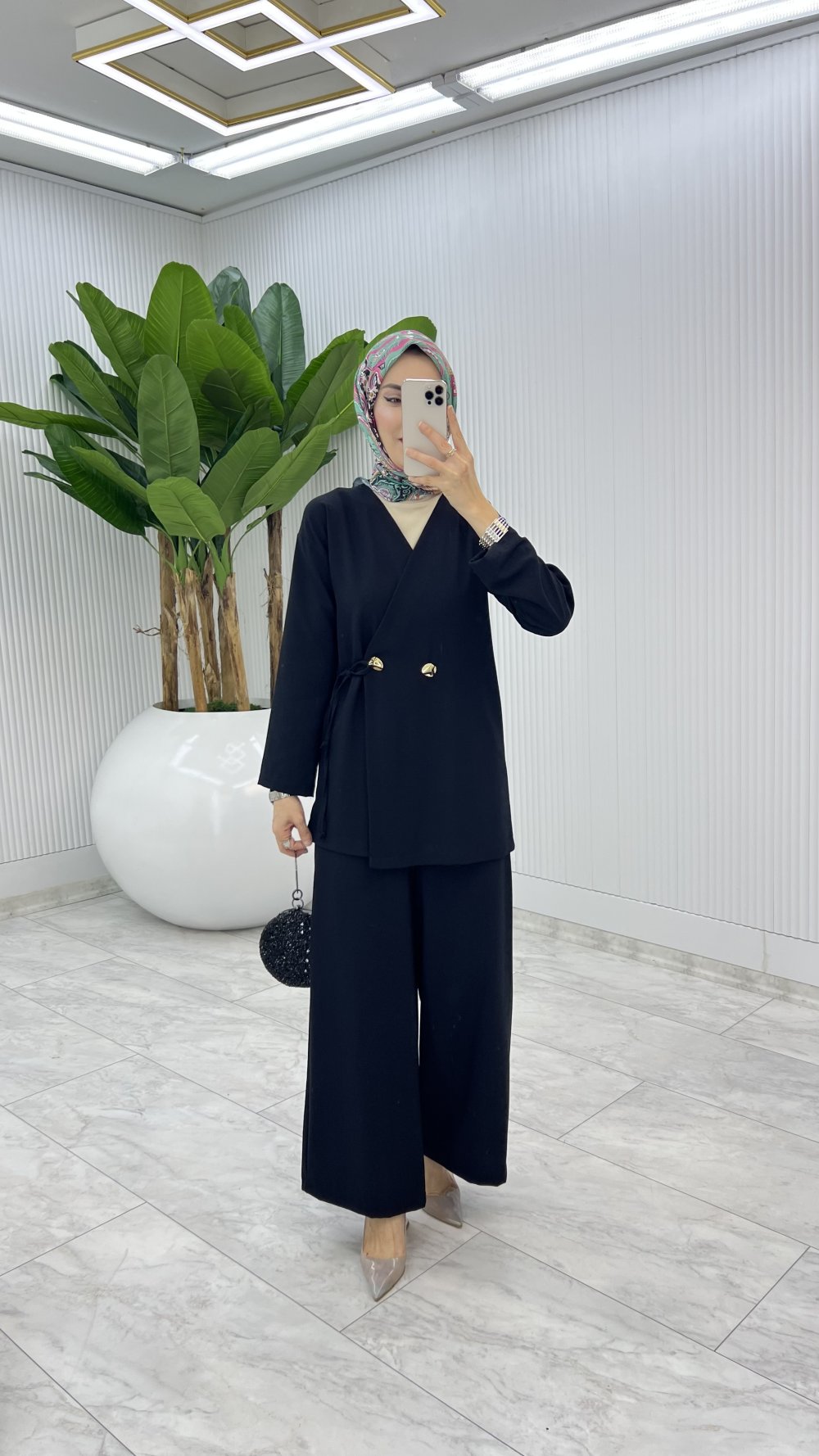 Siyah Güler Pantolonlu Takım Tesettür Giyim Siyah