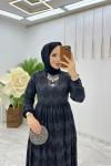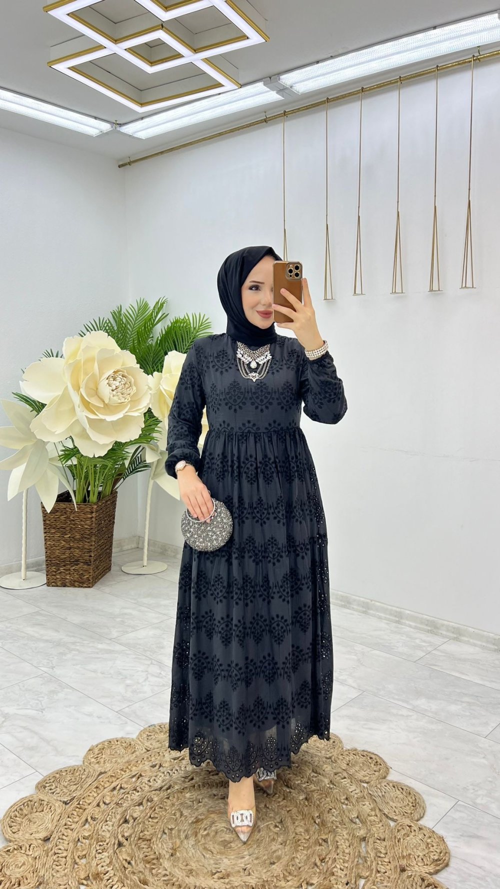 Siyah Jasmin Brode Elbise Tesettür Giyim Siyah