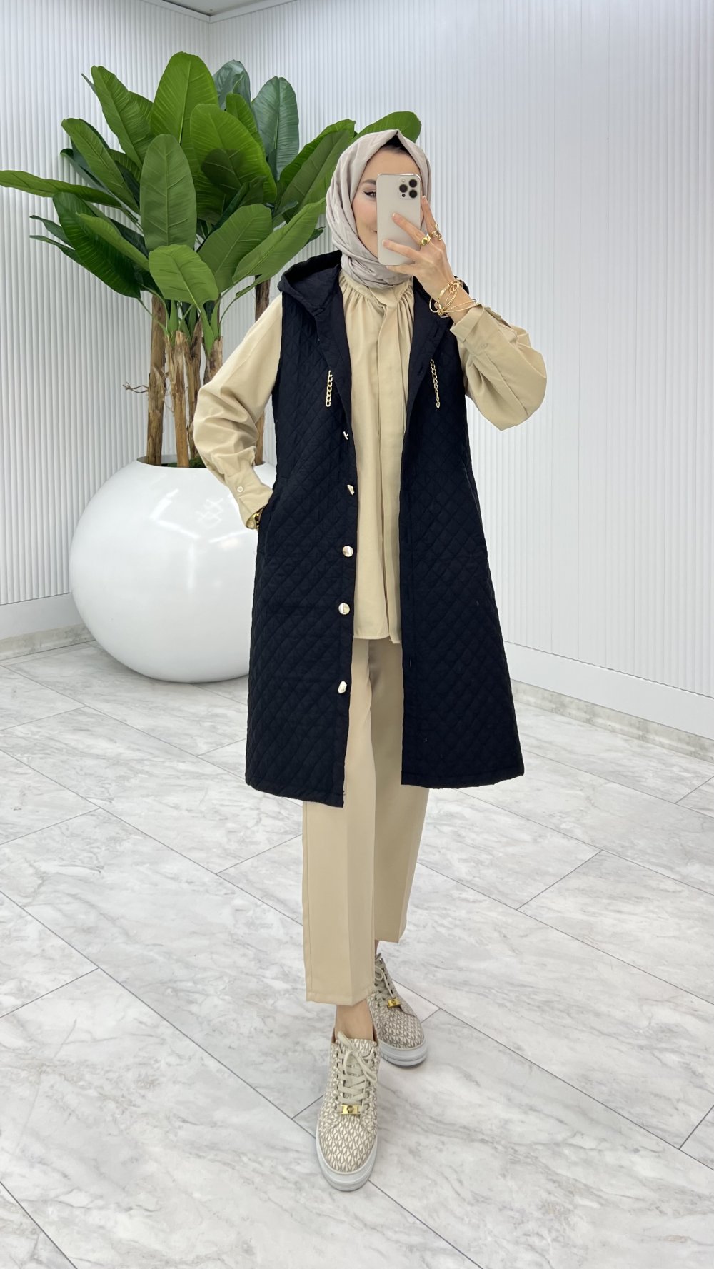 Siyah Kapitone Yelek Tesettür Giyim Siyah