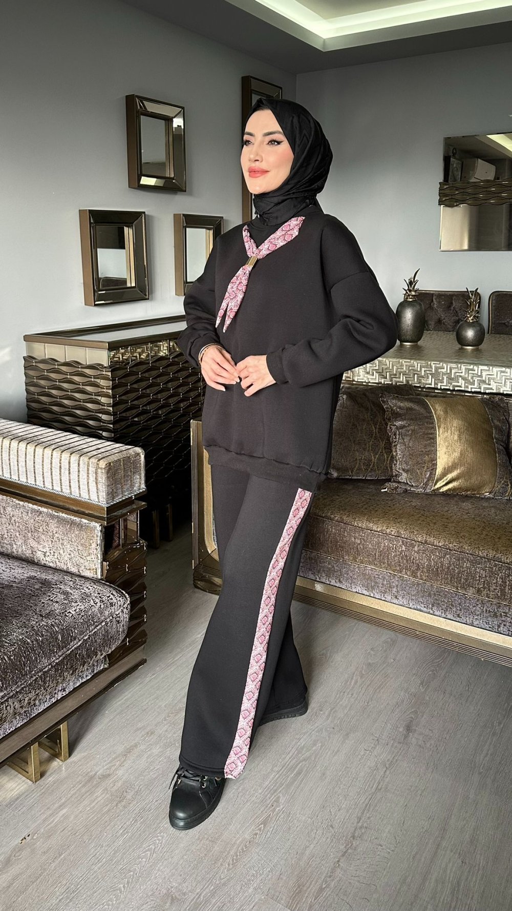 Siyah Premıum Scuba Fularlı Takım Tesettür Giyim Siyah