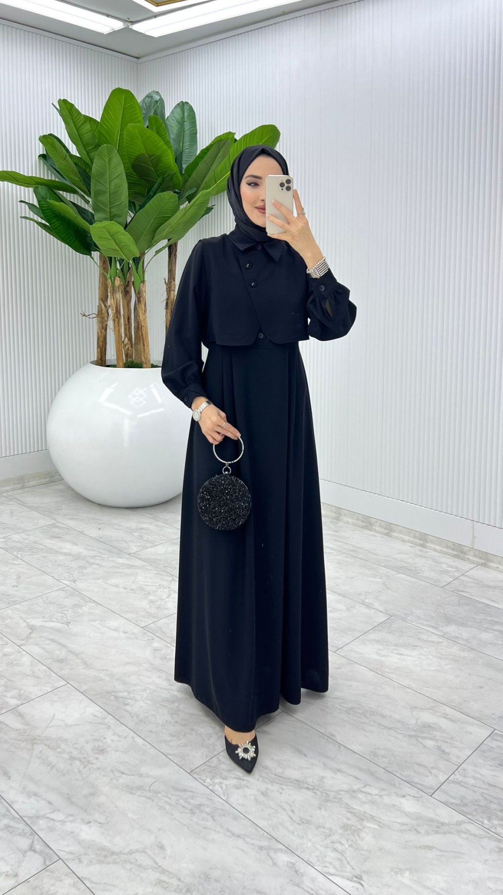 Siyah Sevgi Yelekli Elbise Takım Tesettür Giyim Siyah