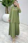 Soft Yeşil Şermin Sandy Piliseli Etek Takım Tesettür Giyim Su Yeşili